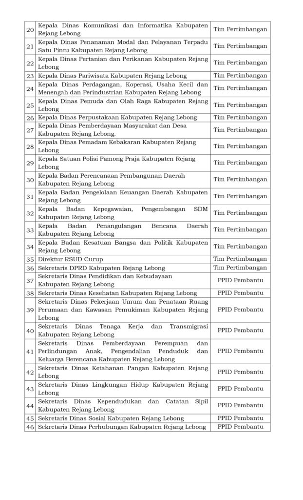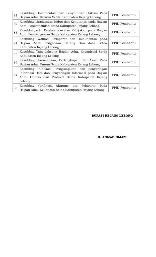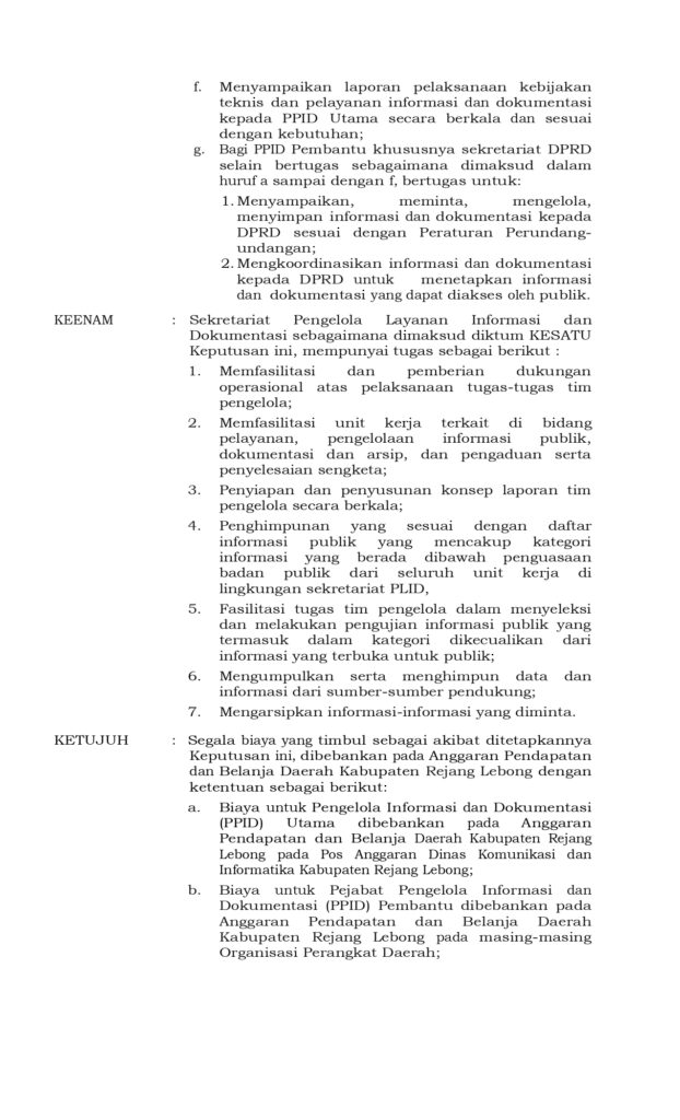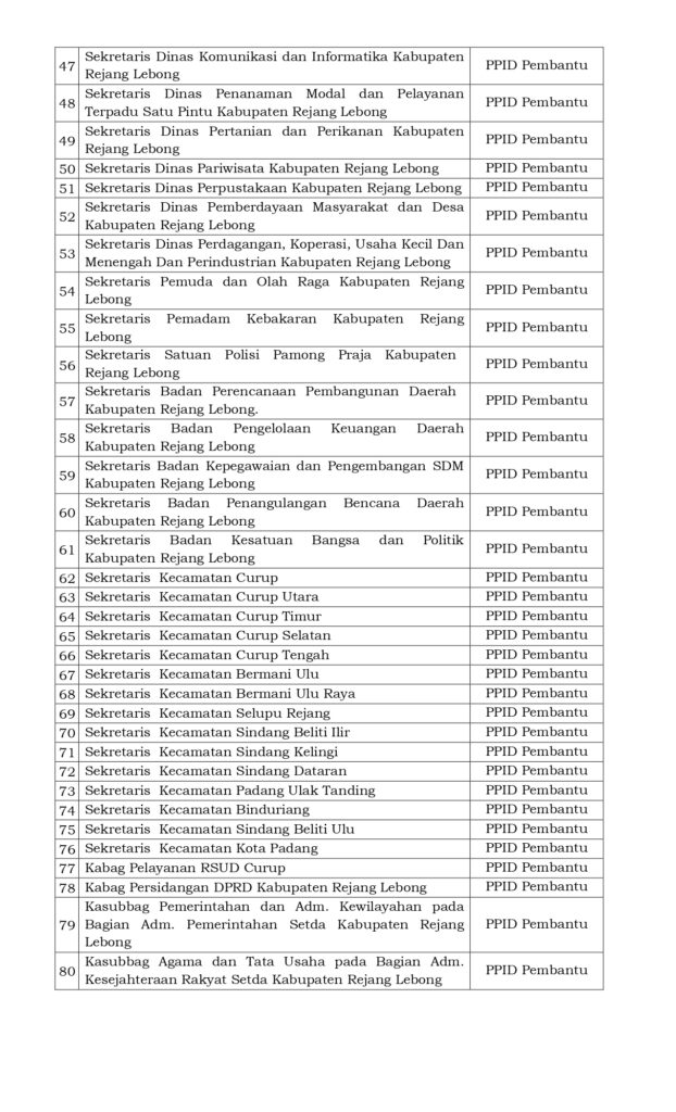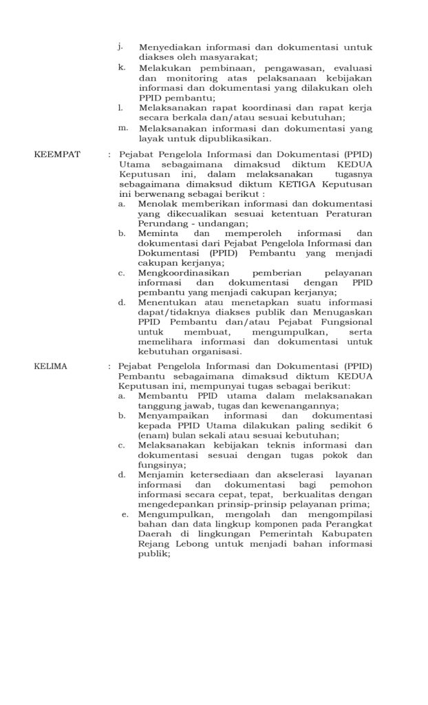 Penetapan Pengelola Layana Informasi dan Dokumentasi dan Sekretariat Pengelola Layanan Informasi dan Dokmentasi Pemerintah Kabupaten Rejang Lebong